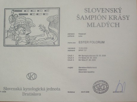 Lara dnes absolvovala zvod mladých v Pezinku. Nechala sa posúdiť ukážkovo. Zhryz má nožnicový, výšku 58 cm, farba stredne plavá, ideálna dĺžka chvosta. Vytknuté jej bolo len svetlejšie oko a blahobytná kondícia.